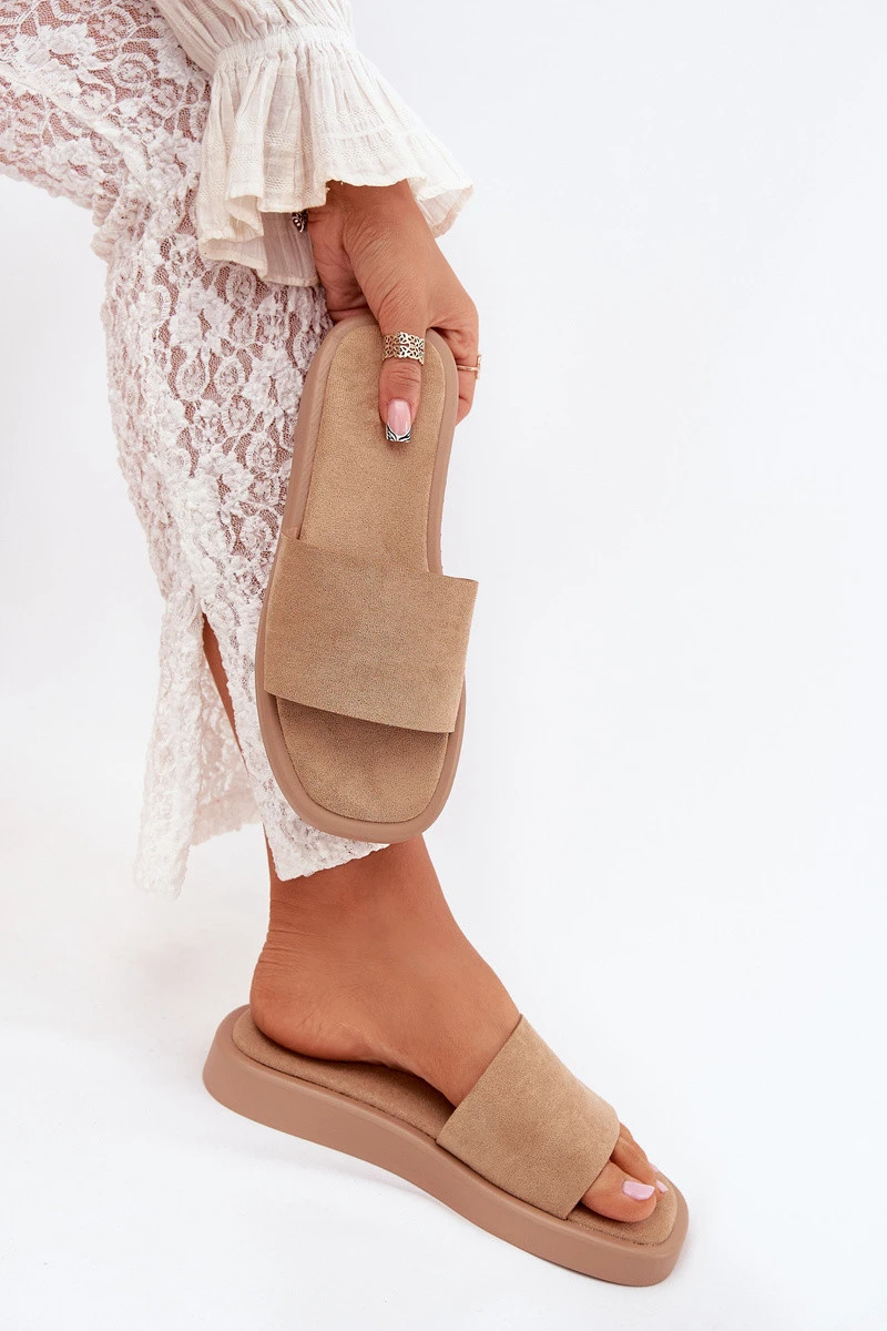 Dámské Pantofle Na Platformě Z Eko Semiše Tmavě Béžové Jorina