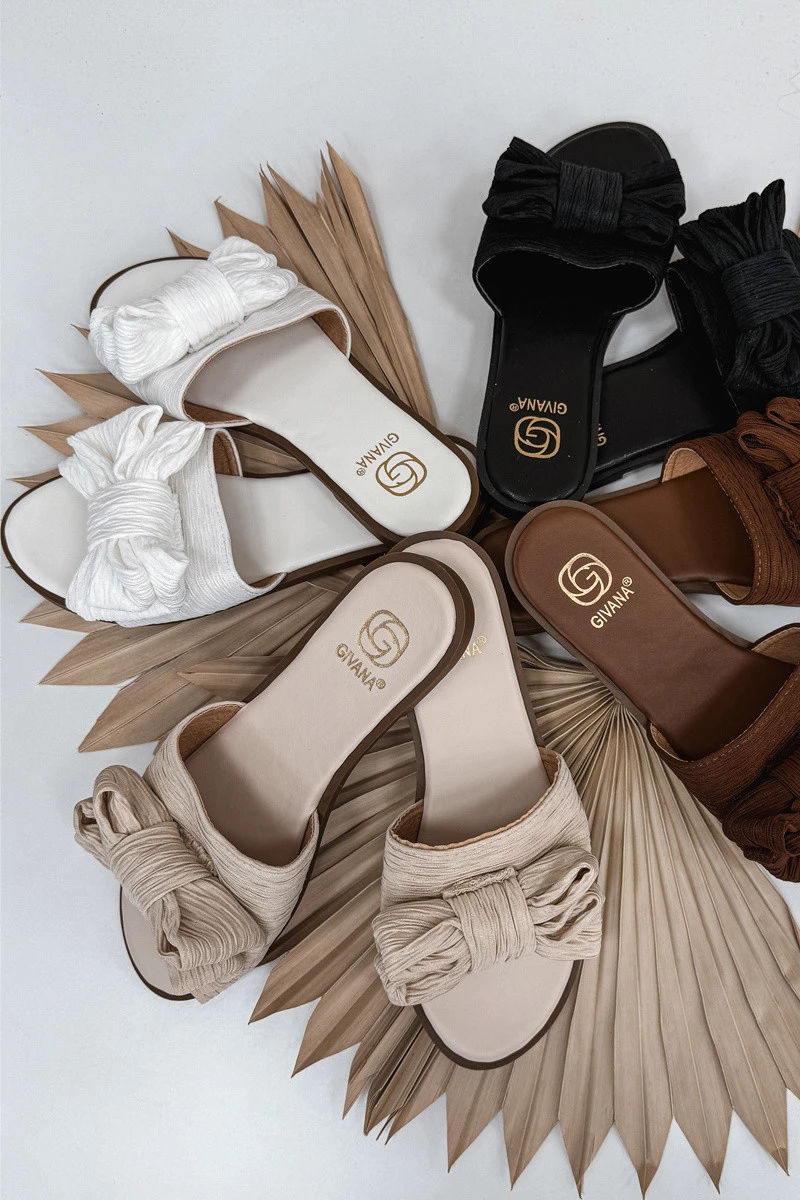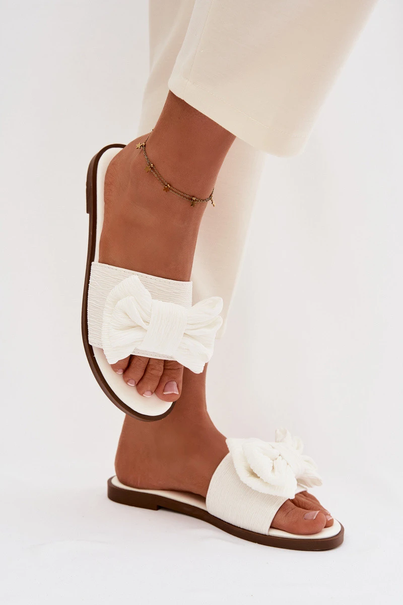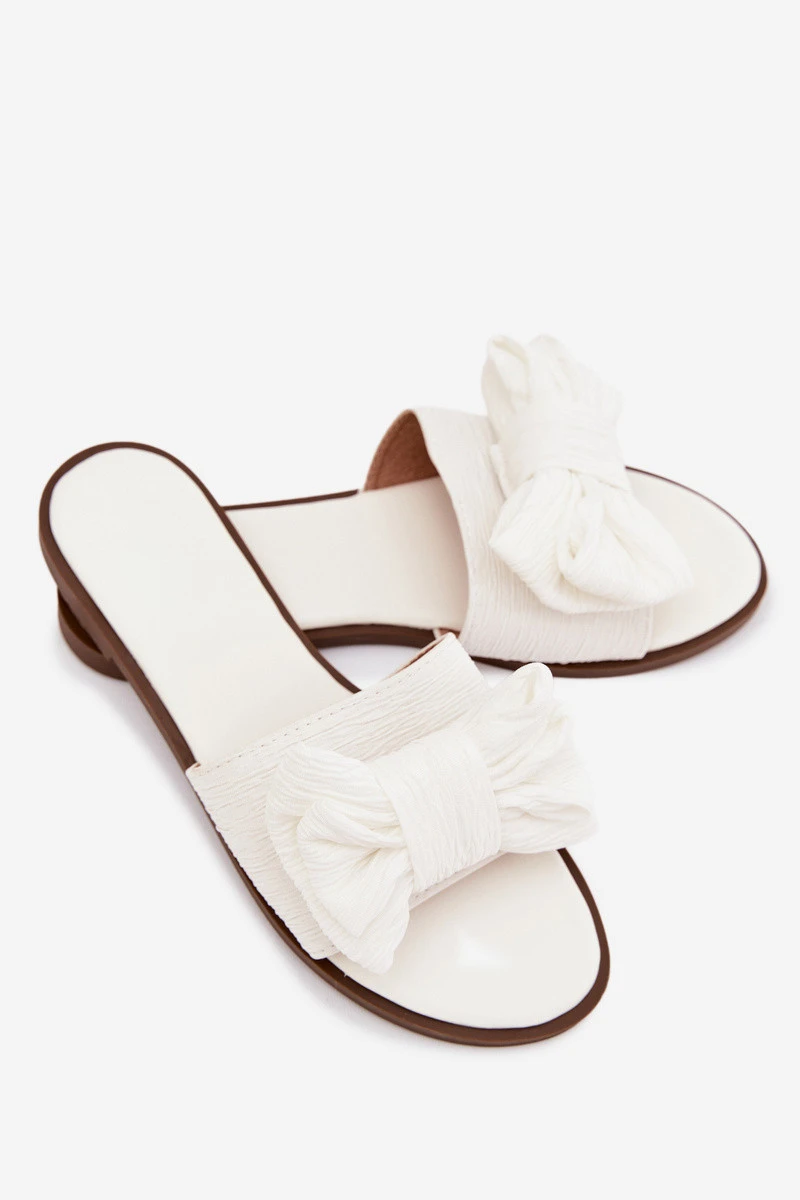 Dámské pantofle na ploché podrážce s mašlí bílé Amivelle