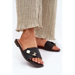 Dámské Pantofle Na Plochém Podpatku S Mašlí Černé model 21697316 - Boto