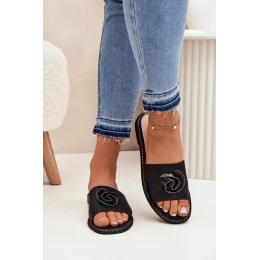 Dámské Pantofle Na Plochém Podpatku S Ozdobným Detalem KV51-007 Černé