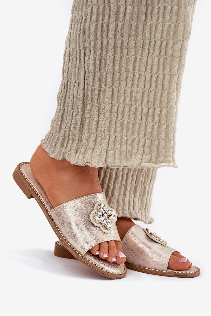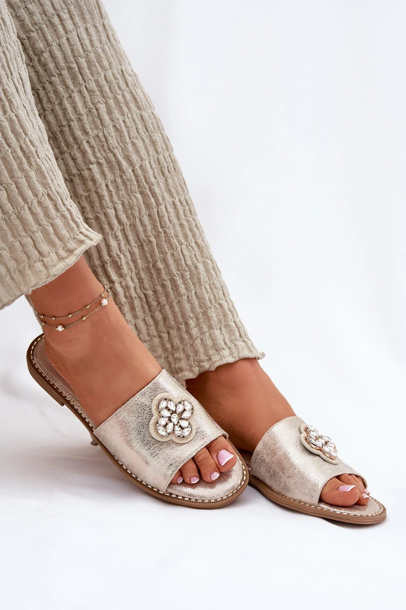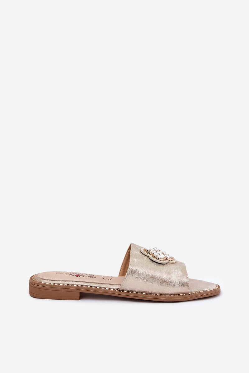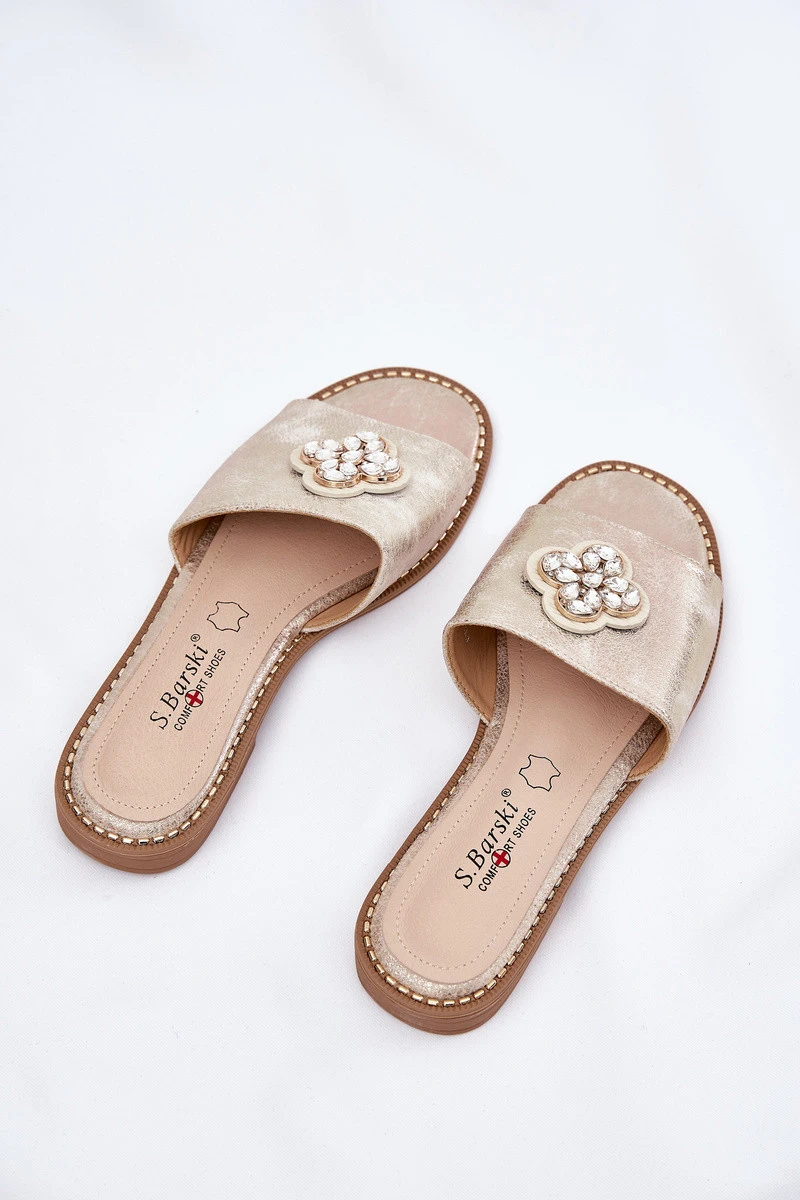 Dámské Pantofle Na Plochém Podpatku S Ozdobným Detalem S.Barski KV51-087 Zlaté