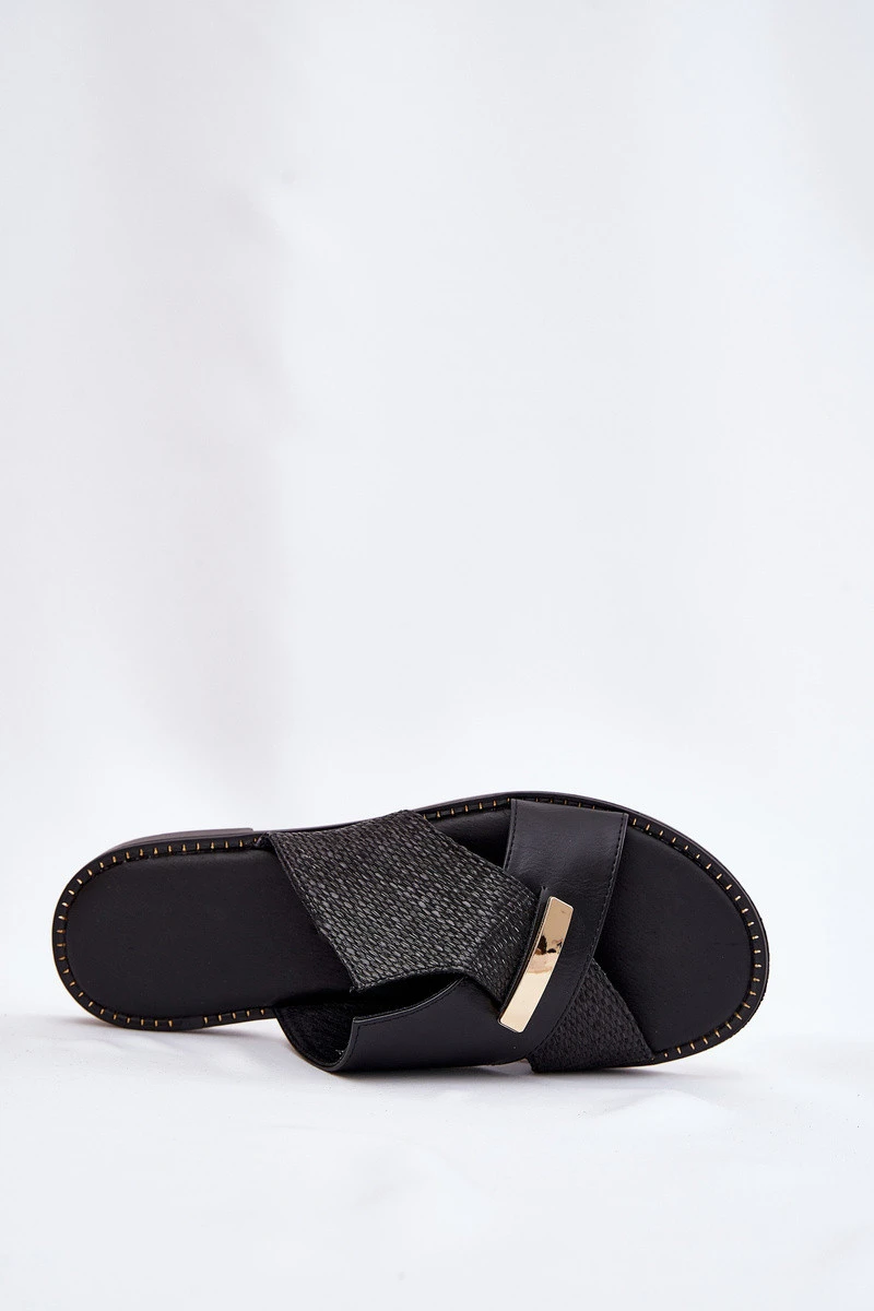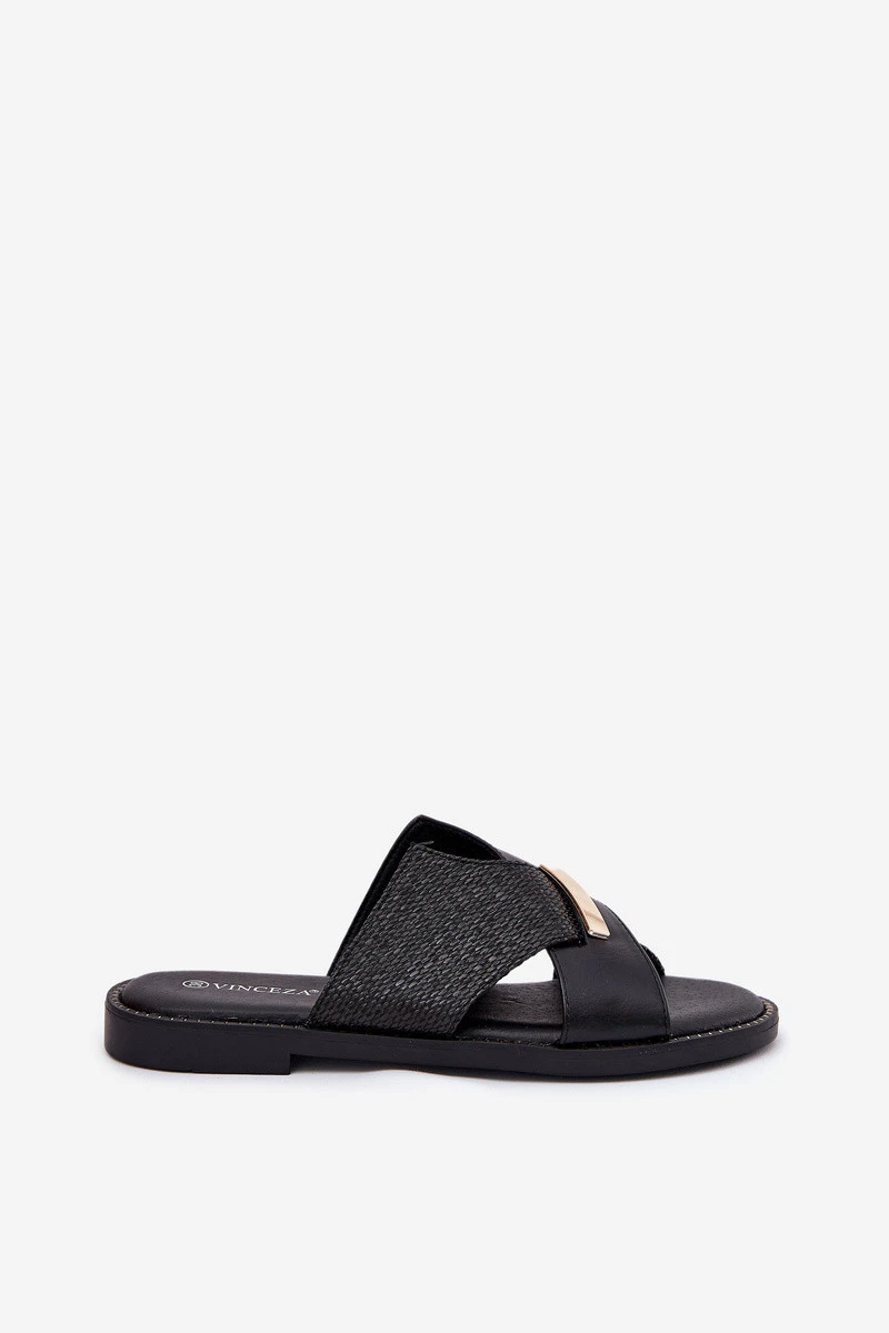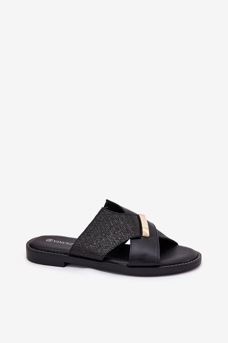 Dámské Pantofle Na Plochém Podpatku S Ozdobným Detalem Vinceza 17385 Černé