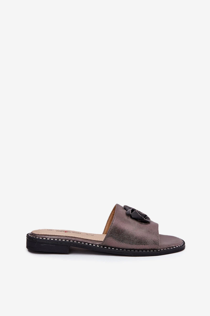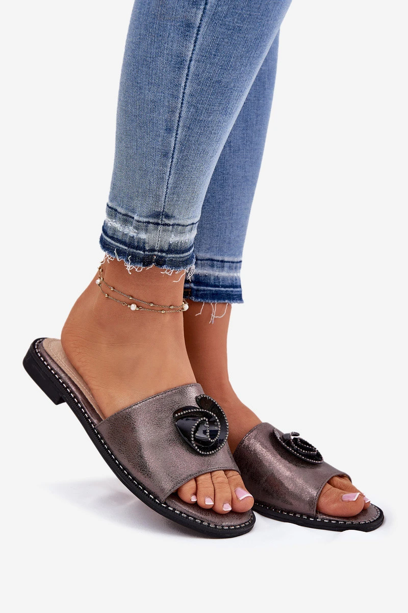 Dámské Pantofle Na Plochém Podpatku S Ozdobným Grafitové model 21698269 - S.Barski