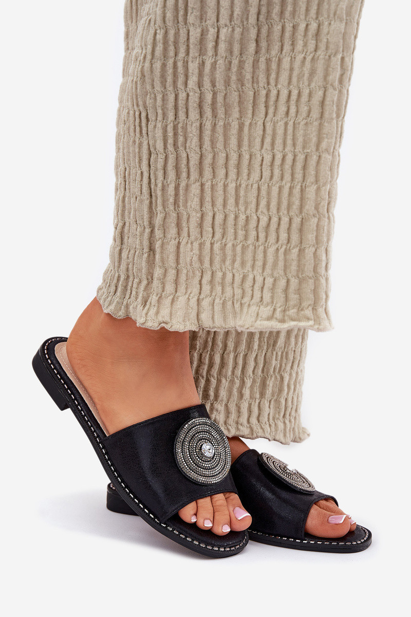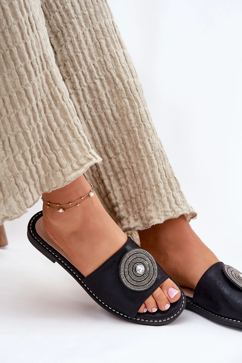 Dámské Pantofle Na Plochém Podpatku S Ozdobou model 21696758 Černé - S.Barski