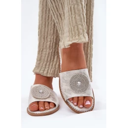 Dámské Pantofle Na Plochém Podpatku S Ozdobou S.Barski KV51-013 Stříbrné