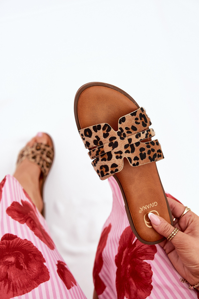 Dámské Pantofle Na Plochém Podpatku S Panterka Hnědé model 21688662 - Boto