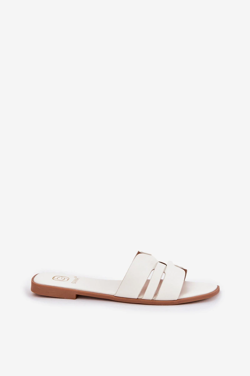 Dámské Pantofle Na Plochém Podpatku S Výřezy Eko Kůže Bílé Ecapus