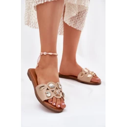 Dámské Pantofle Na Plochém Podpatku Se Zlatými Béžové model 21698998 - Boto