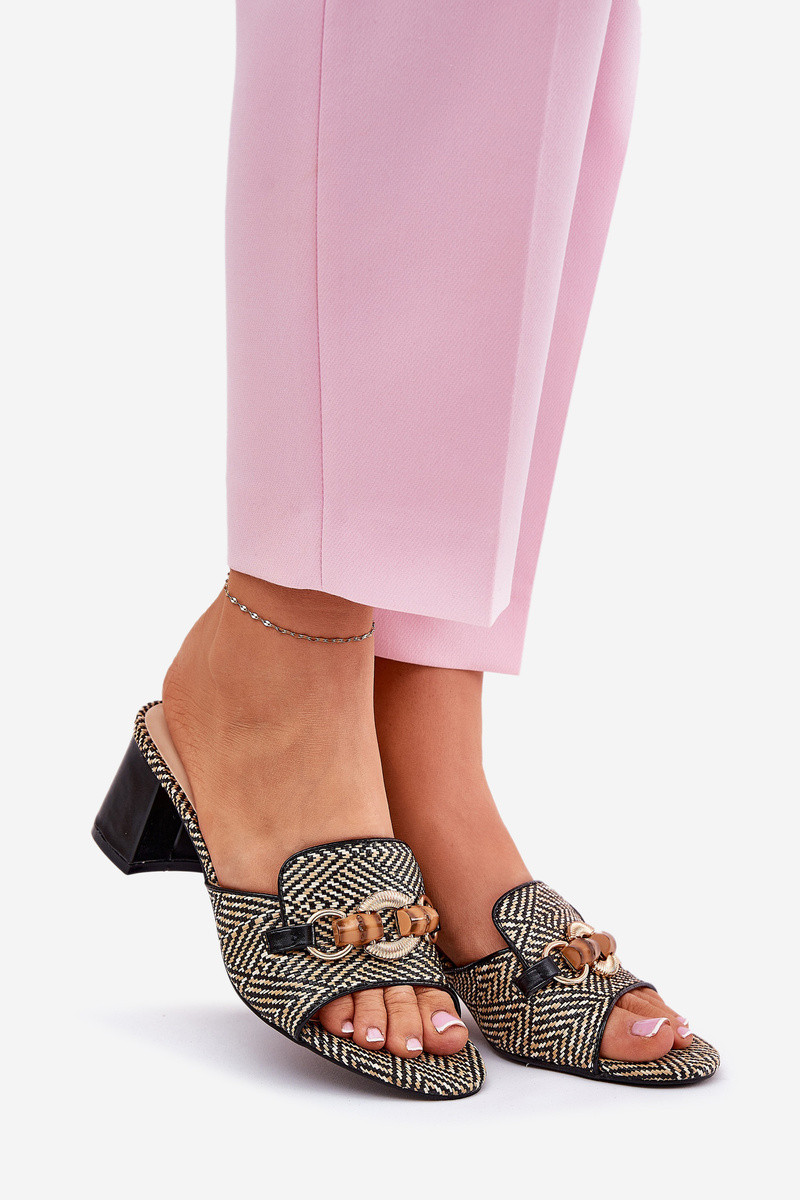 Dámské Pantofle Na Podpatku S Dekorací Černé model 21689670 - Boto