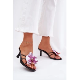 Dámské pantofle vyrobené z eko kůže na jehlových podpatcích jsou rafinovaný doplněk, který vynikne v každém stylu. Model zdobí umělá orchidej, která mu dodává výjimečné kouzlo a ženskou eleganci. Ideální na večerní vycházky a speciální příležitosti, tyto pantofle podtrhnou vaši eleganci a jedinečný styl. Při výběru velikosti se řiďte tabulkou velikostí.