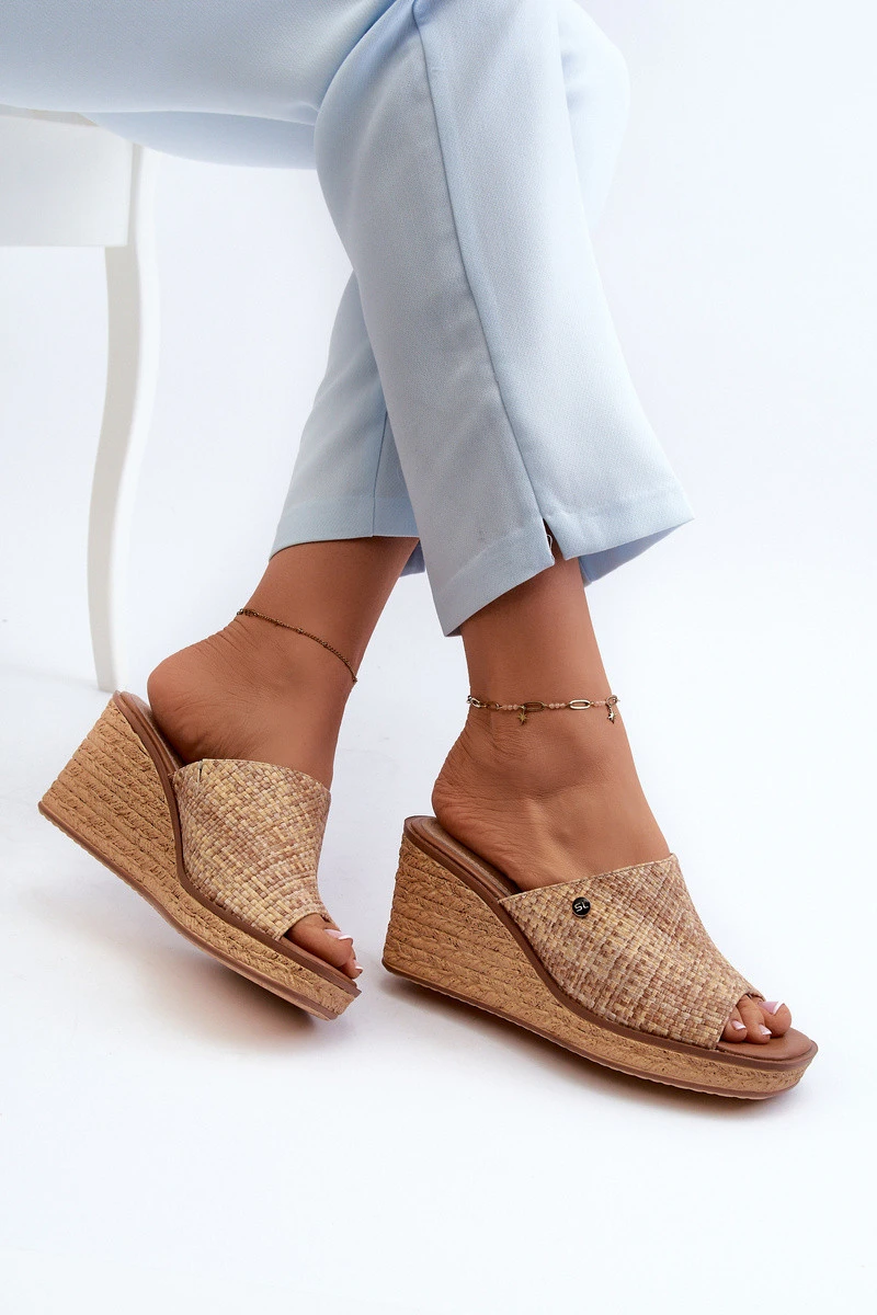 Dámské pantofle na podpatku Sergio Leone KL213 Beige
