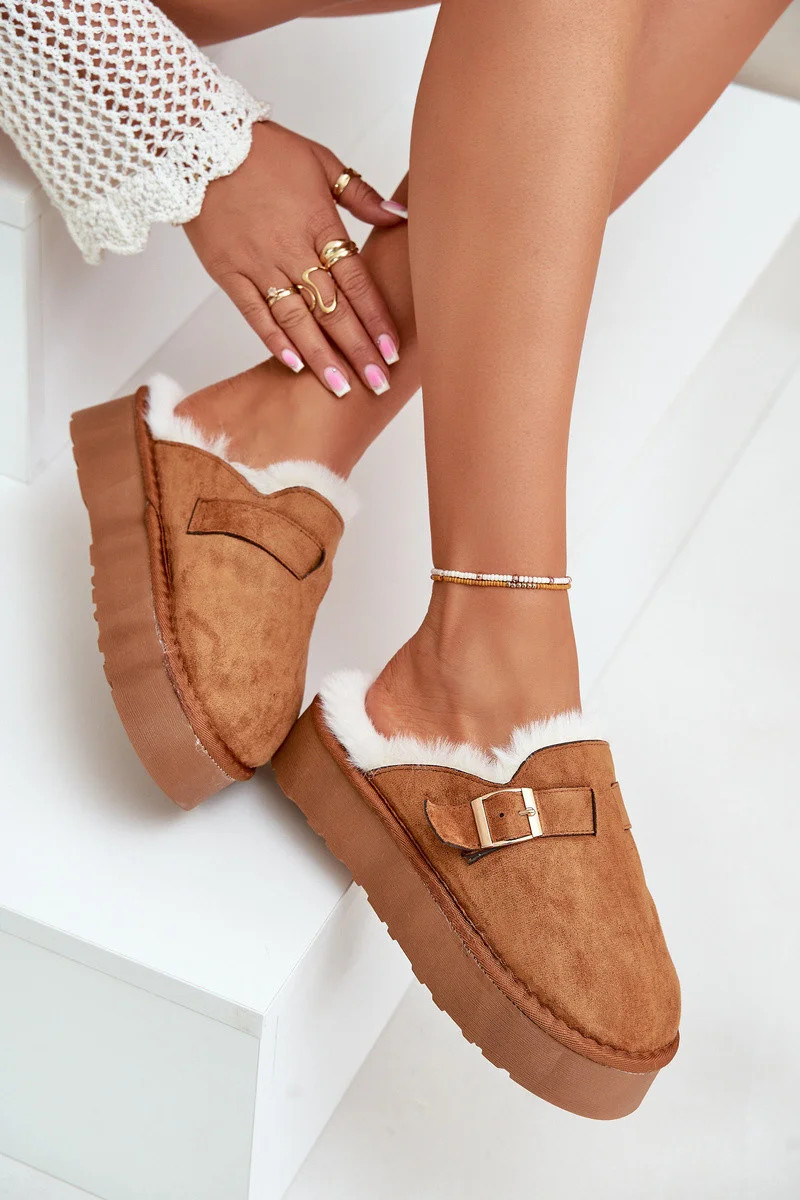 Dámské Pantofle Na Silné Podešvi S Kožešinou A Přezkou Camel Linneola