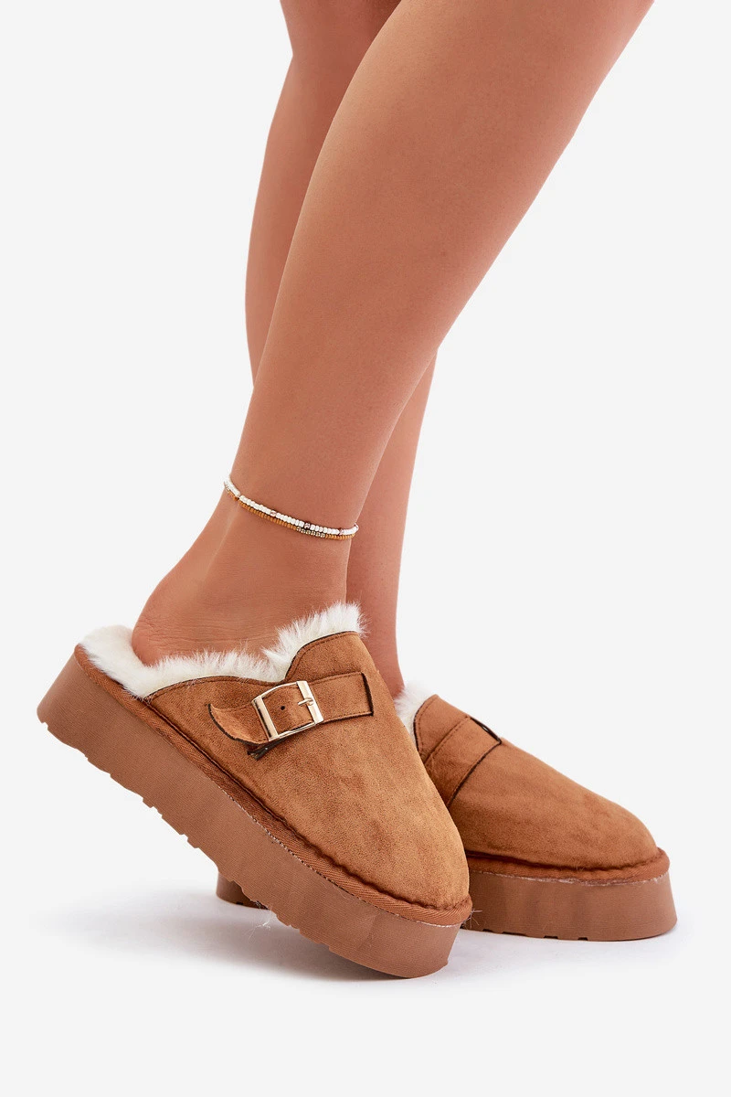 Dámské pantofle na silné podrážce s kožešinou a sponou Camel model 21677930 - Boto
