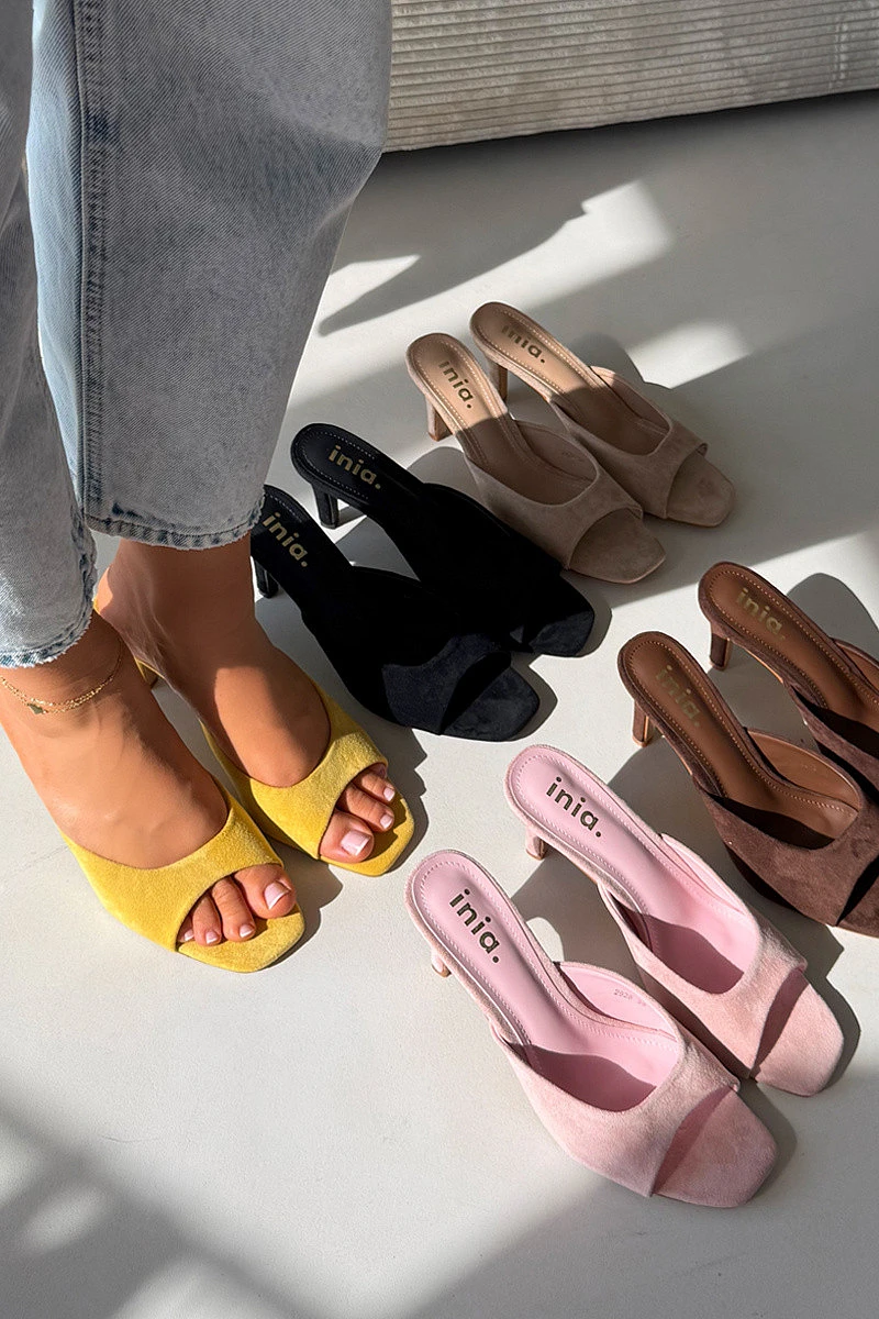 Přidání recenze k Dámské pantofle na tenkém podpatku Žluté Revina