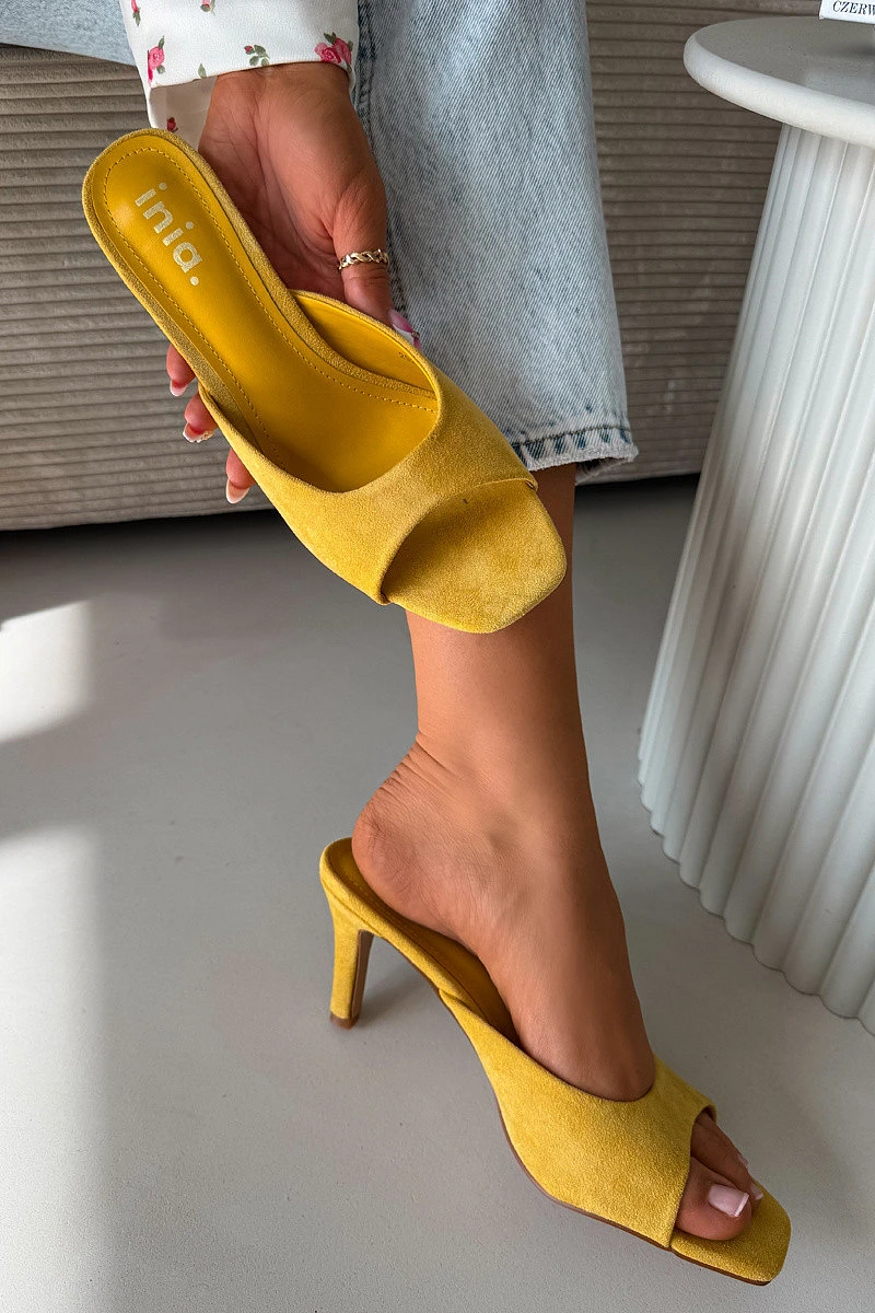 Dámské pantofle na tenkém podpatku Žluté Revina