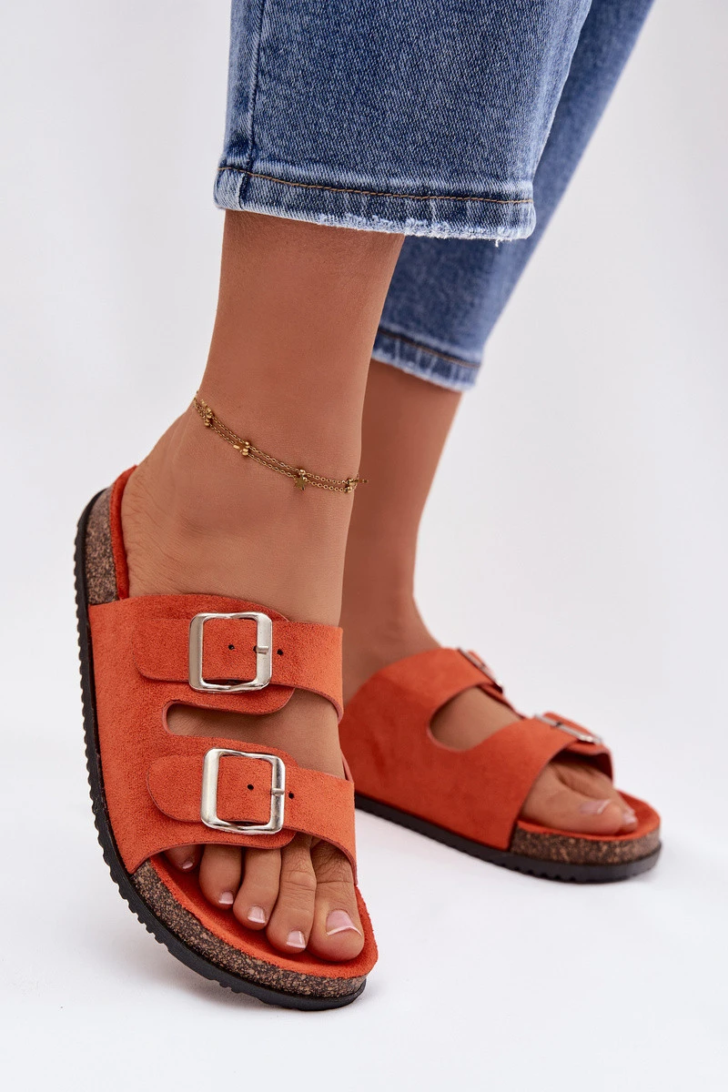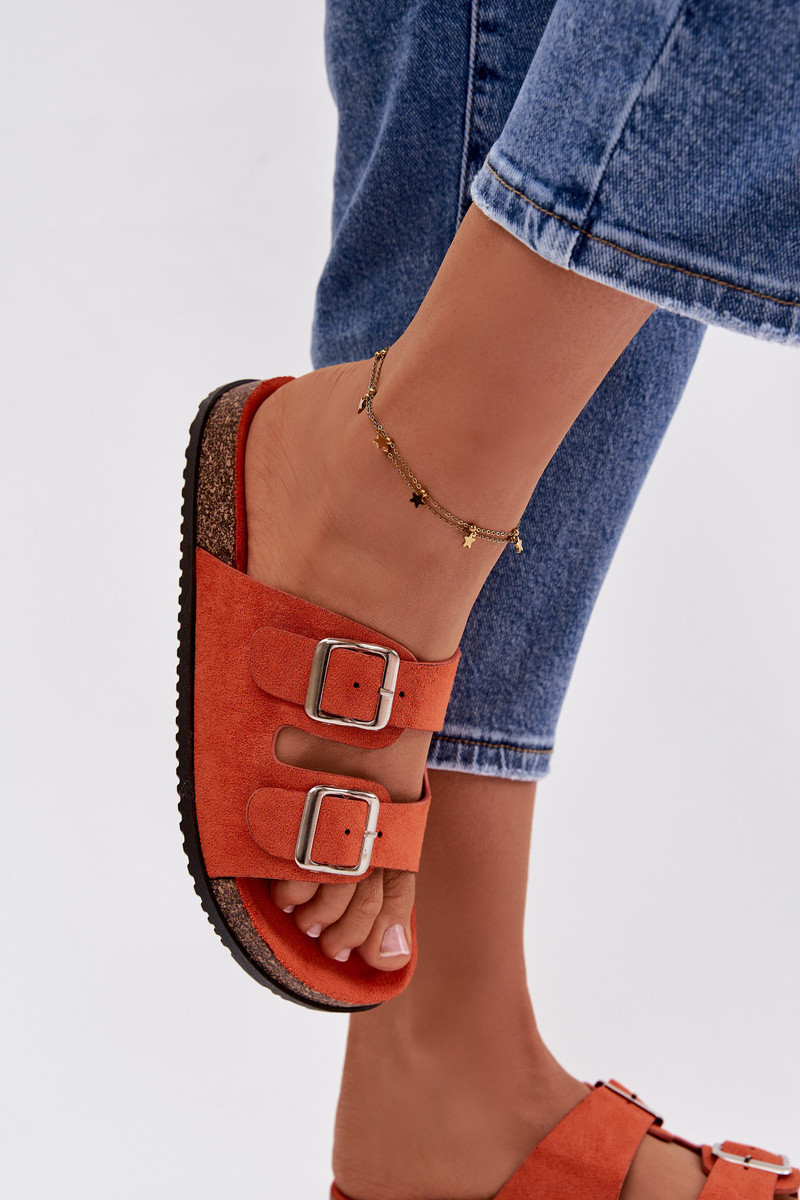 Dámské pantofle oranžové s přezkami model 21908441 - Boto