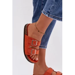 Dámské pantofle oranžové s přezkami Oliena