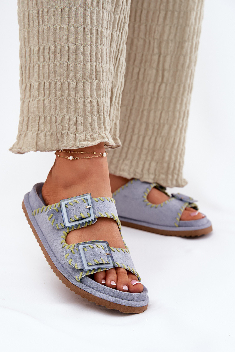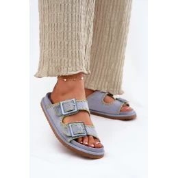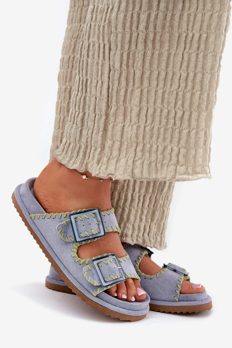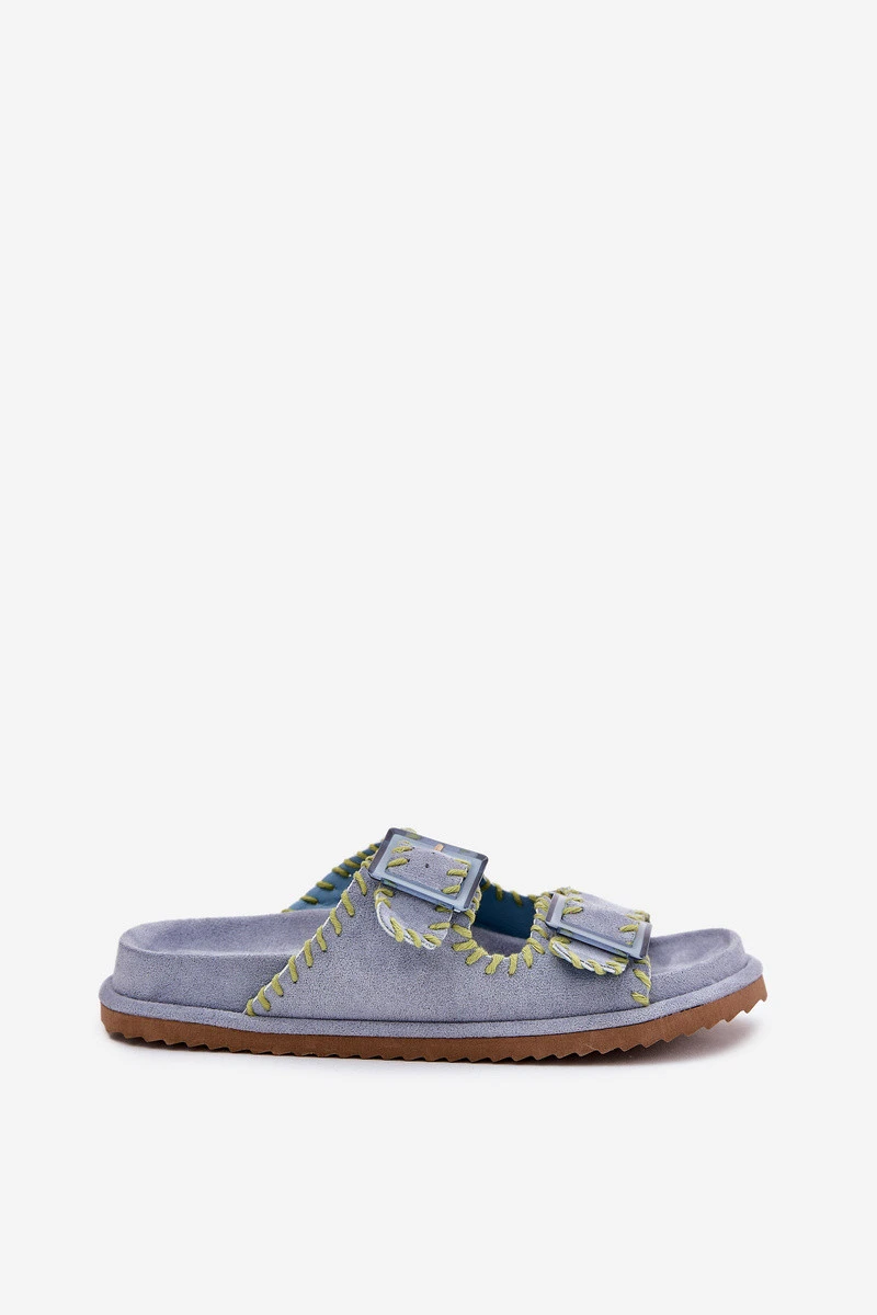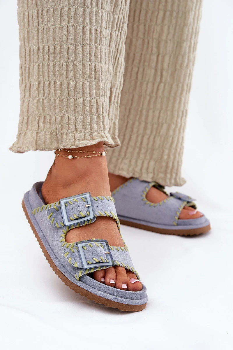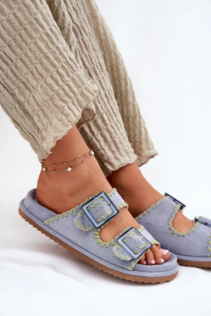 Dámské pantofle z ekologické semišové kůže, které přitahují pozornost ozdobným lemováním a efektními sponami vpředu. Komfort nošení zajišťuje profilovaná stélka, která se dokonale přizpůsobí tvaru nohy. Tento módní model je skvělou volbou na letní dny - ideální jak pro městské stylizace, tak na prázdninové výlety! Při výběru velikosti se řiďte tabulkou velikostí.