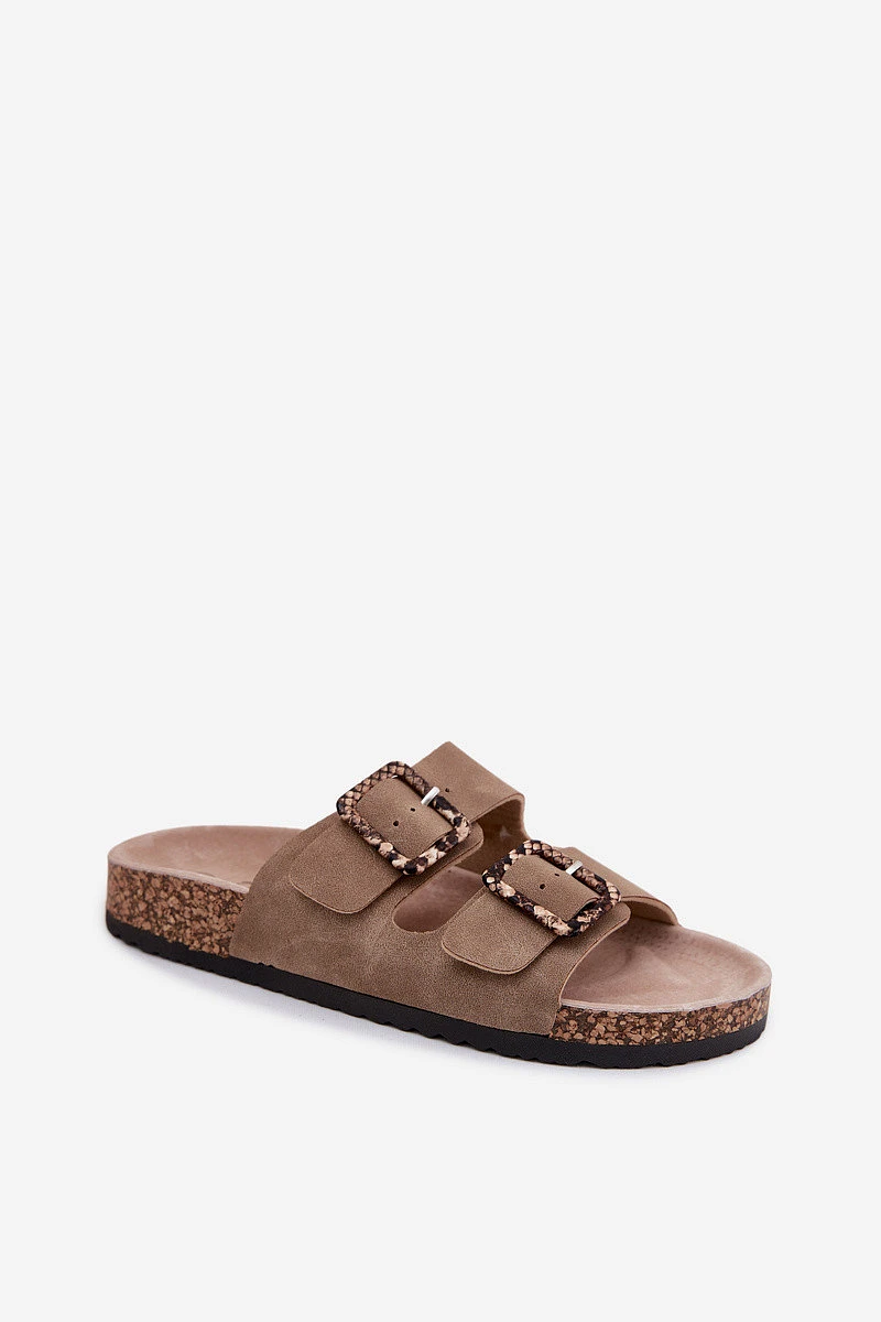 Dámské pantofle s korkovou podrážkou s přezkami s hadím vzorem Béžové Melia