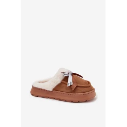 Dámské pantofle s kožešinou a mašlí hnědé Fenella