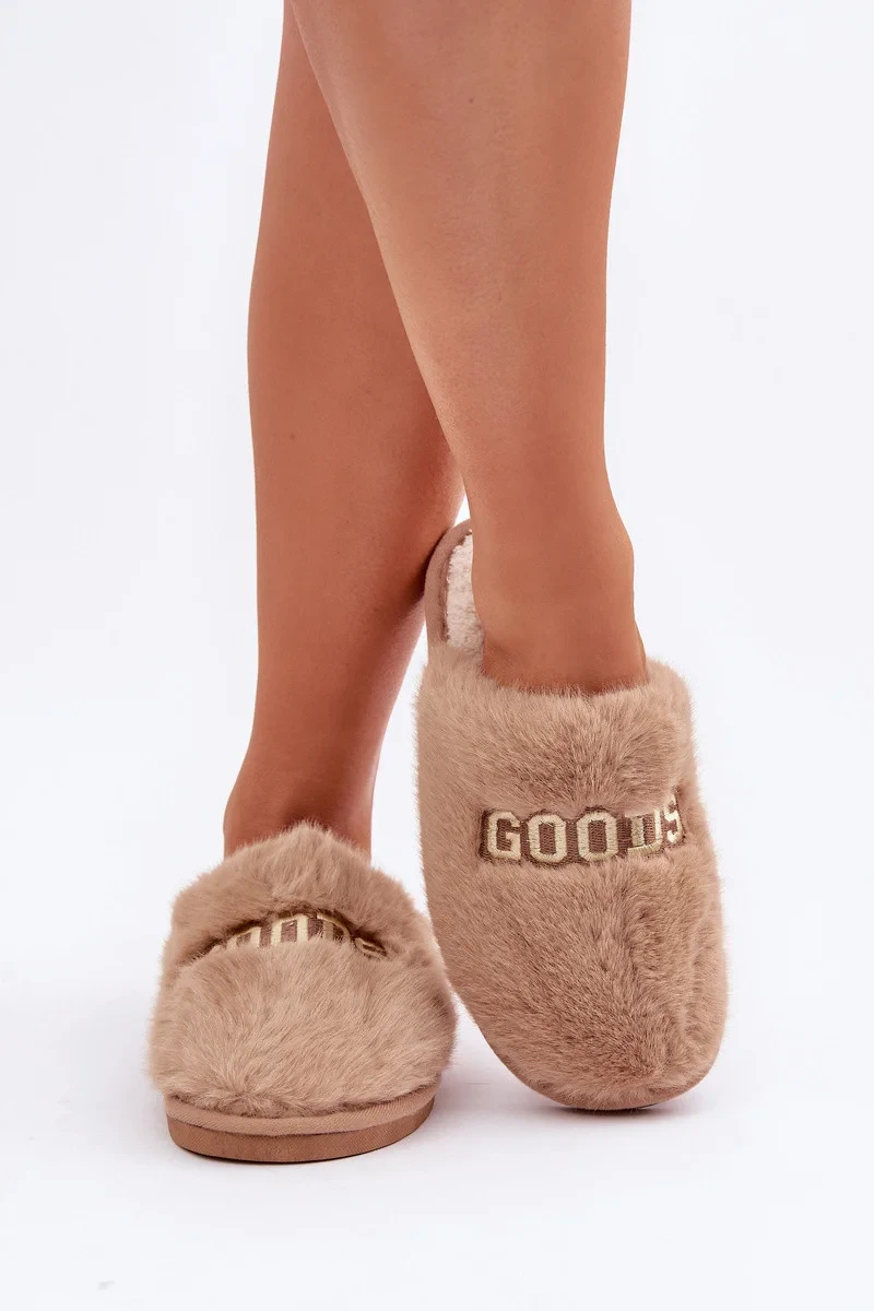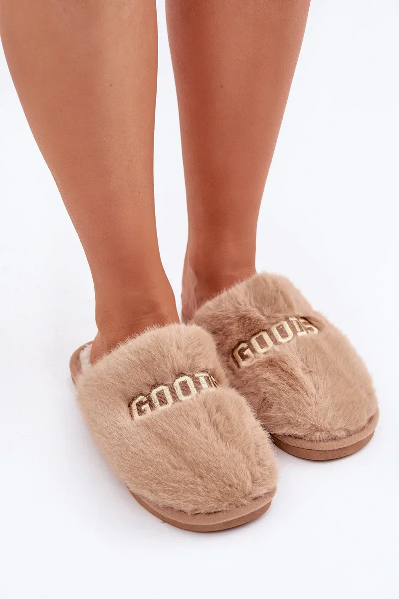 Dámské Pantofle S Kožešinou A Nápisem Hnědé Kalelia