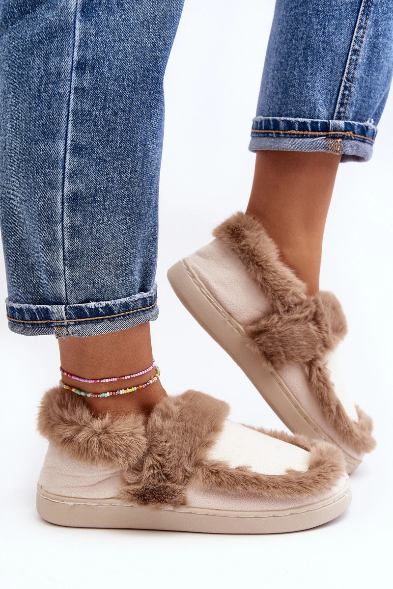 Dámské pantofle s kožešinou béžové Sailey