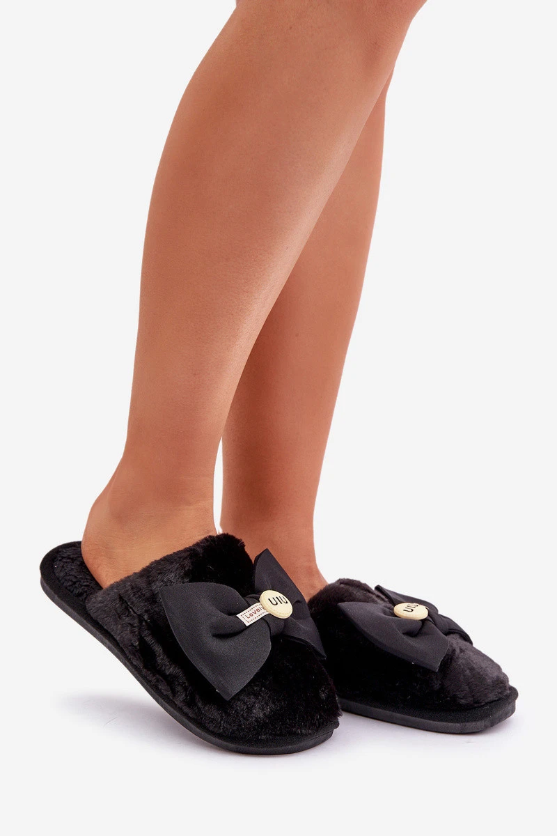 Dámské Pantofle S Kožíškem A Mašlí Černé Olfedi