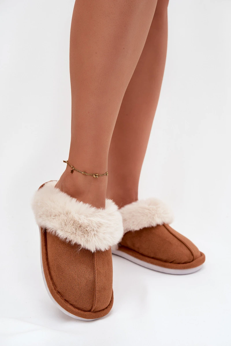 Dámské pantofle s kožíškem – camel Delissa