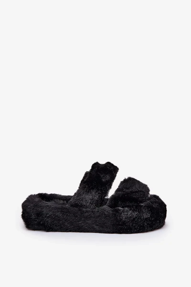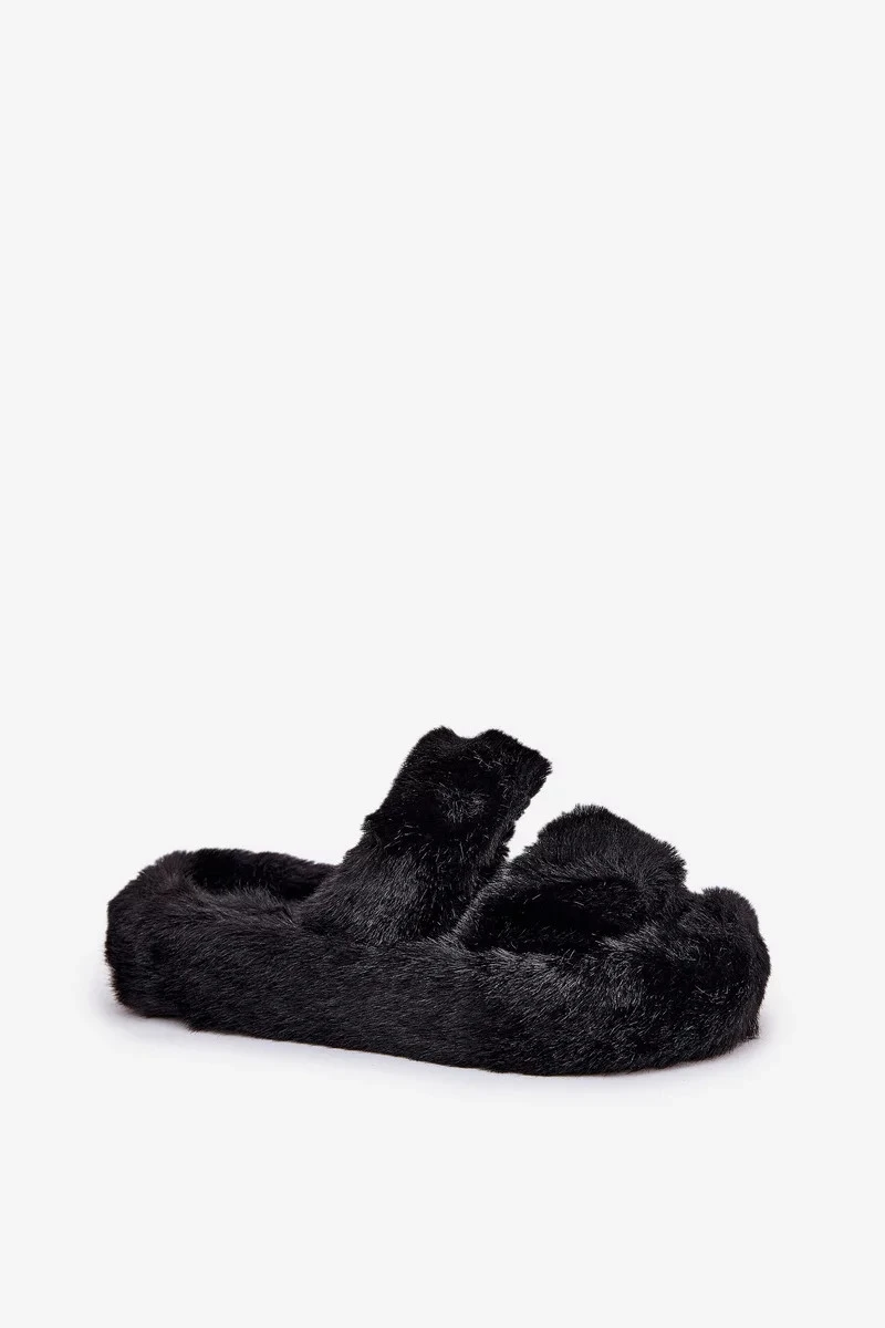 Dámské pantofle s kožíškem na platformě Talfedi – černé
