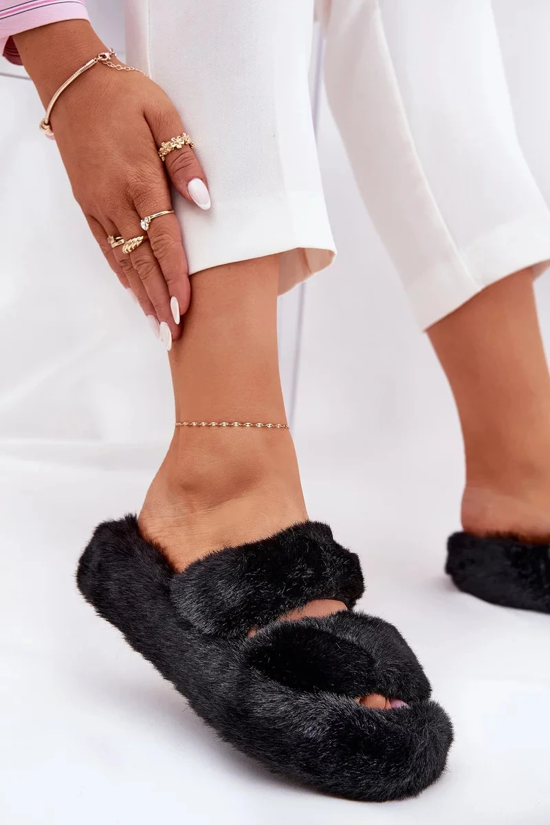 Přidání recenze k Dámské pantofle s kožíškem na platformě Talfedi – černé