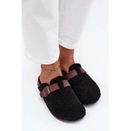 Dámské pantofle s kožíškem typu beránek – černé Lorivine