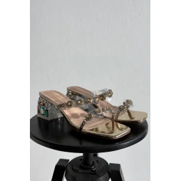 Dámské pantofle s krystaly D&A model 21900382 Zlaté - S.Barski