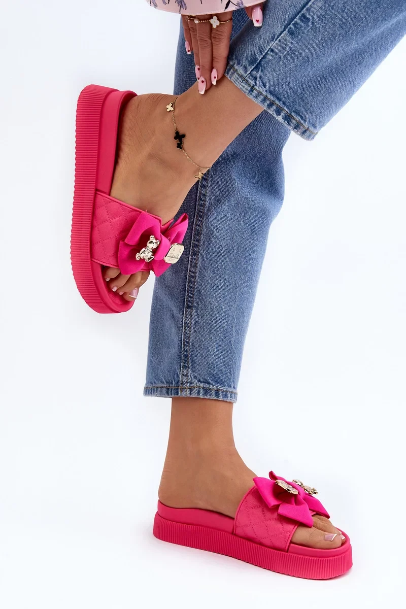 Dámské pantofle s mašlí a medvídkem Fuchsie Katterina
