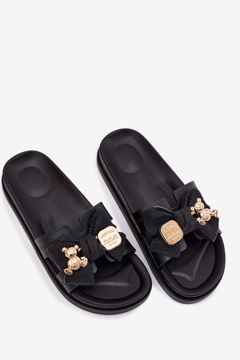 Dámské Pantofle S Mašlí A Zlatou Černé model 21702577 - Boto