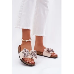 Dámské pantofle s mašlí na korkové platformě béžové Lisandrea