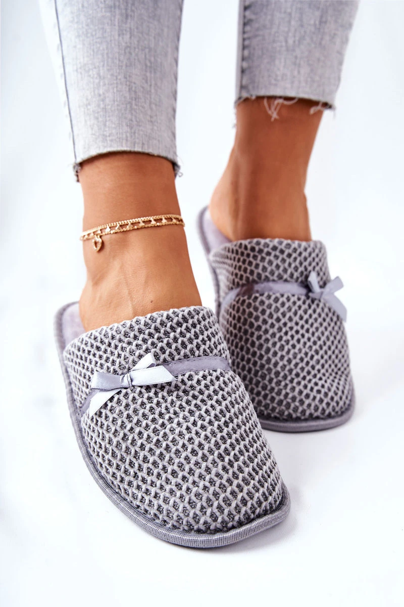 Dámské Pantofle S Mašlí šedé Evira