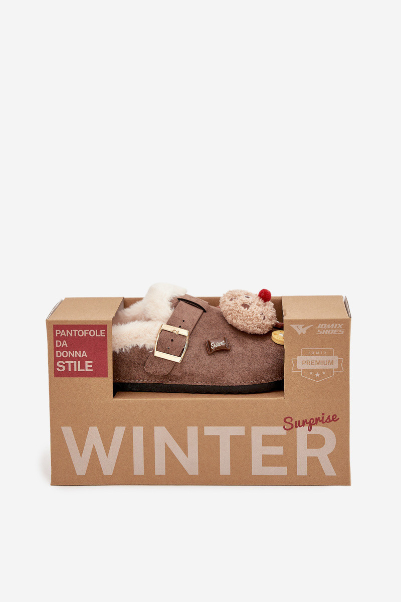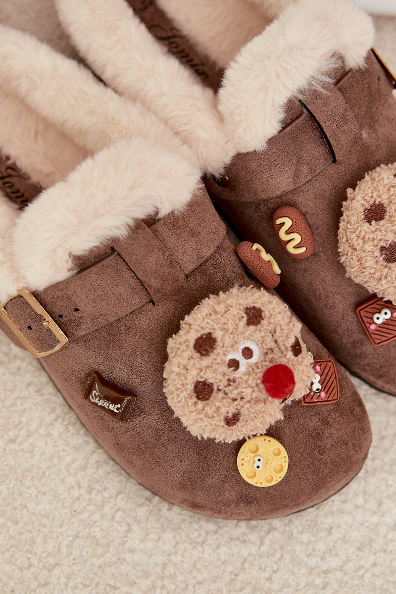 Dámské pantofle s ozdobami a přezkou vyhřívané kožešinou hnědé Thalora