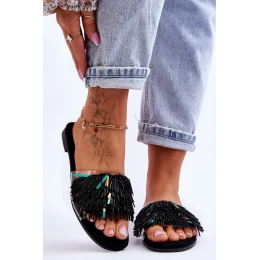 Dámské pantofle s ozdobami Černá model 21618380 - S.Barski