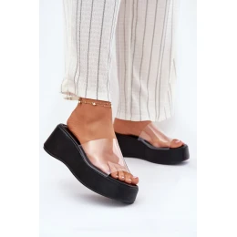 Dámské pantofle s průhledným páskem jsou kombinací moderního stylu a pohodlí. Tento model je umístěn na klínu, který jemně zeštíhluje siluetu a zároveň zajišťuje stabilitu při chůzi. Měkká vložka zaručuje komfort i při dlouhém nošení. Tyto pantofle skvěle doplní jak každodenní, tak elegantnější letní outfity. Při výběru velikosti se řiďte tabulkou velikostí.