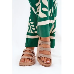 Dámské Pantofle S Pásky A Přezkami Béžové Uliri