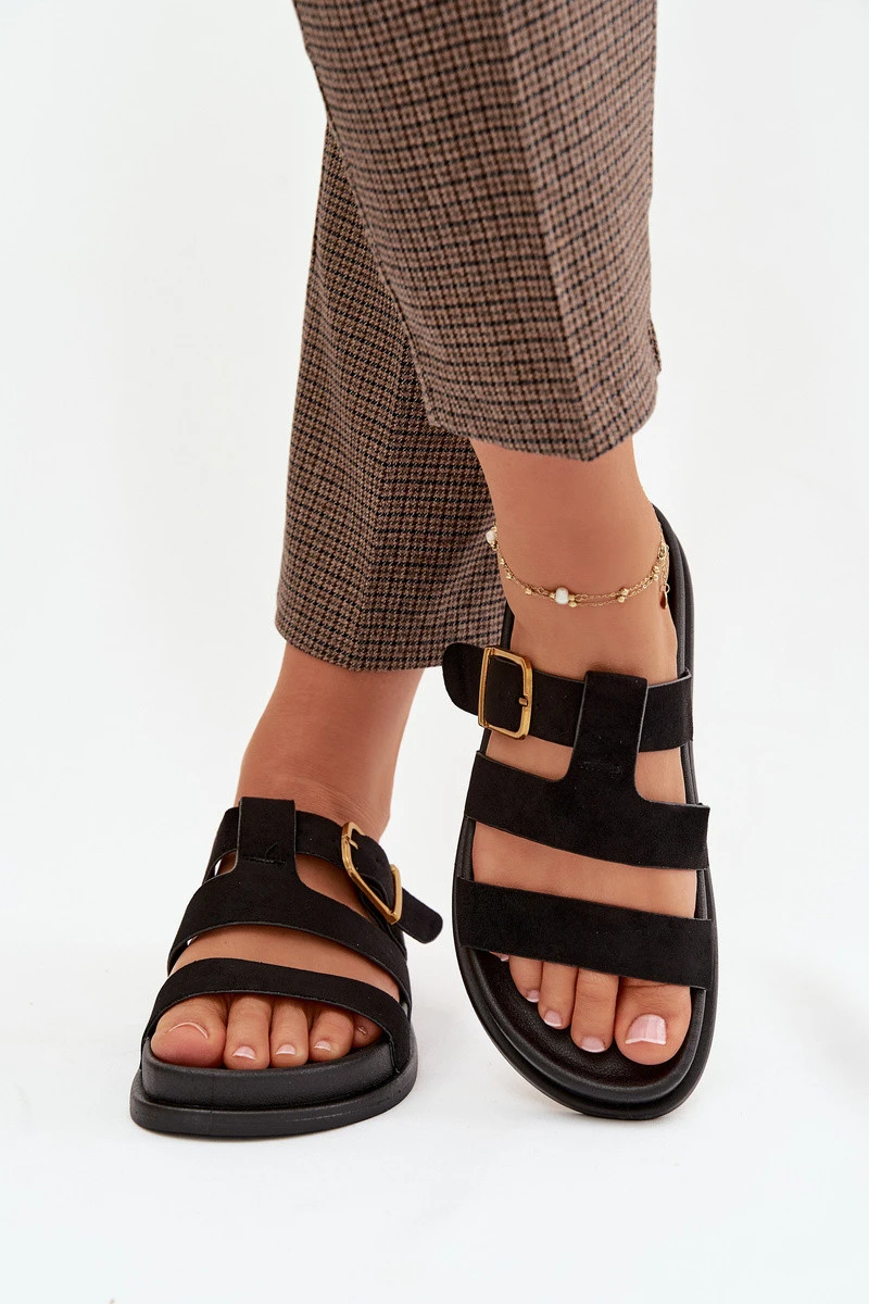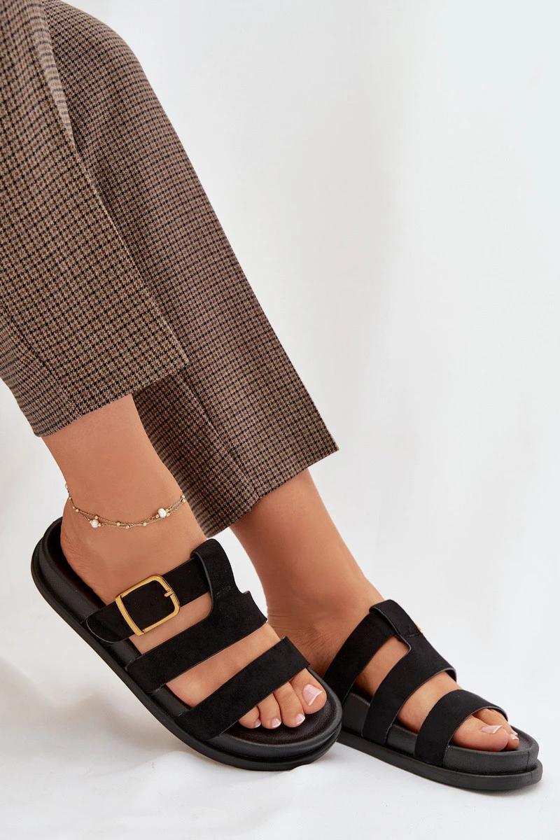 Dámské pantofle s pásky a zlatým Černé model 21919125 - Boto