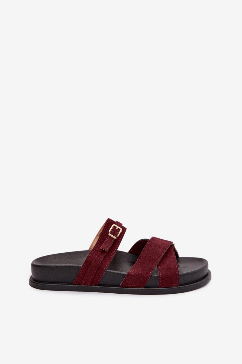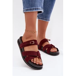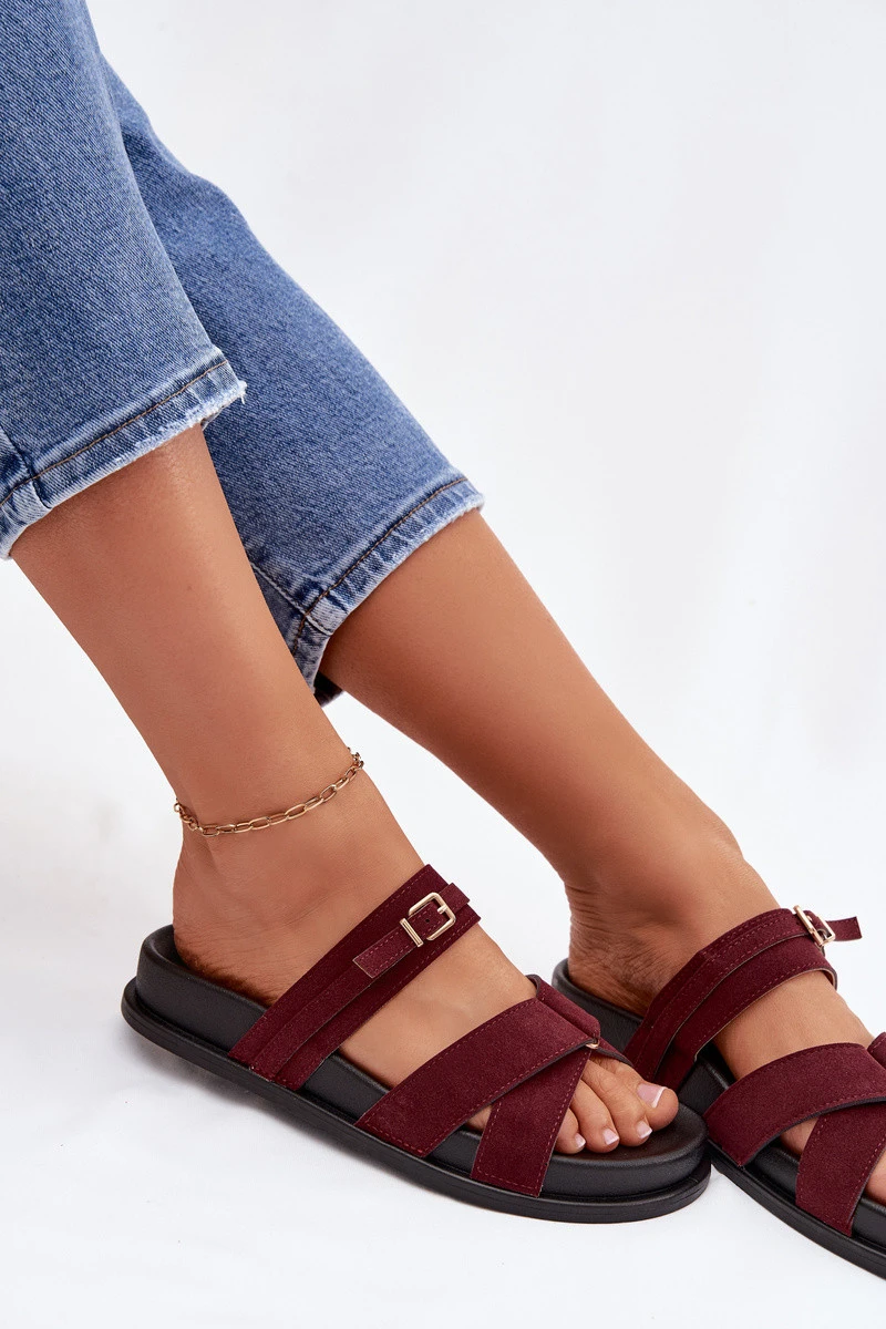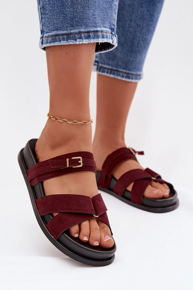 Dámské pantofle s pásky a zlatým přezkou Bordó Selorina