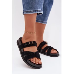 Dámské pantofle s pásky a zlatým přezkou Černé model 21954646 - Boto
