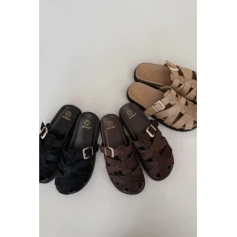 Přidání recenze k Dámské pantofle s pásky a zlatým přezkou Čokoládové model 21956066 - Boto