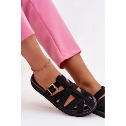 Přidání recenze k Dámské pantofle s pásky a zlatým sponou Černé Roselisse