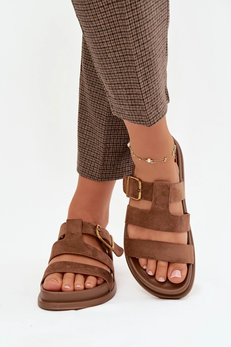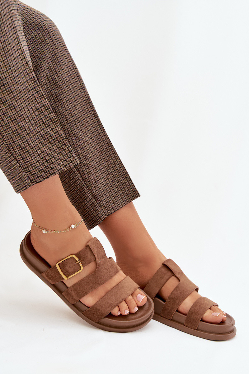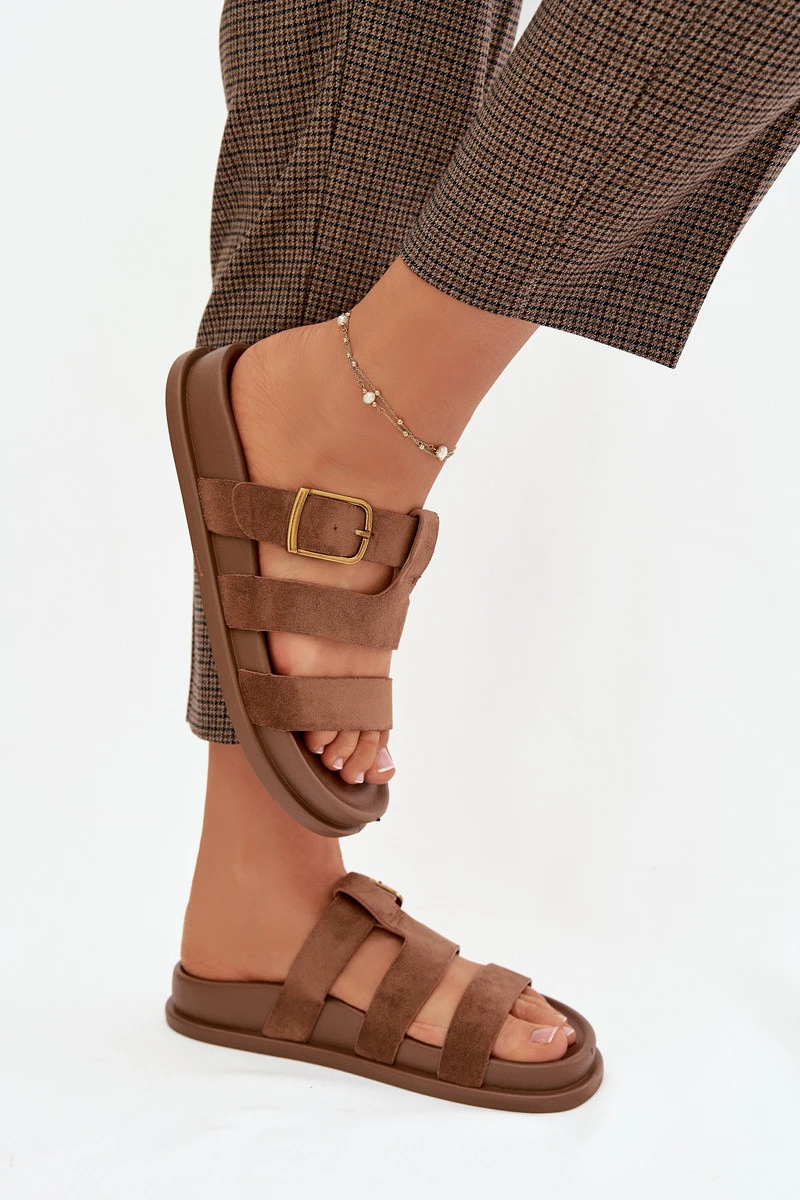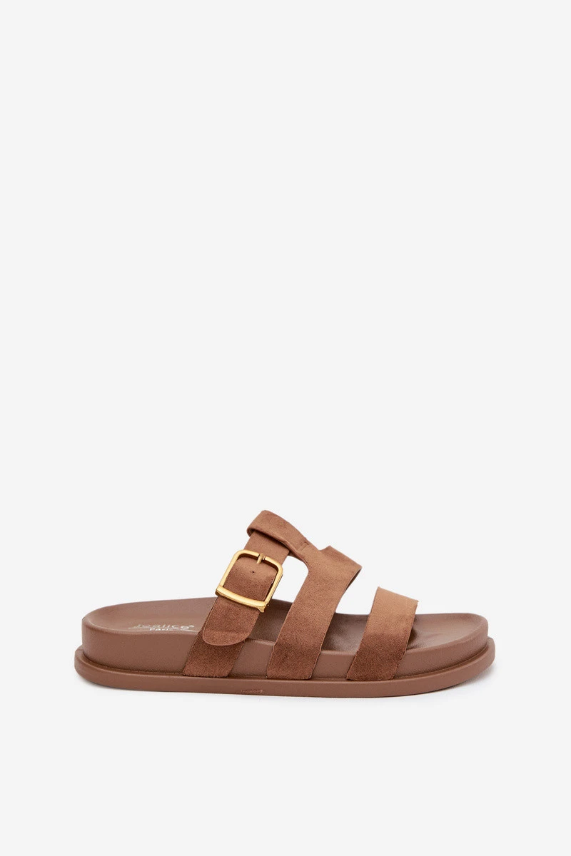 Dámské pantofle s pásky a zlatým sponou, hnědé Ulirissa