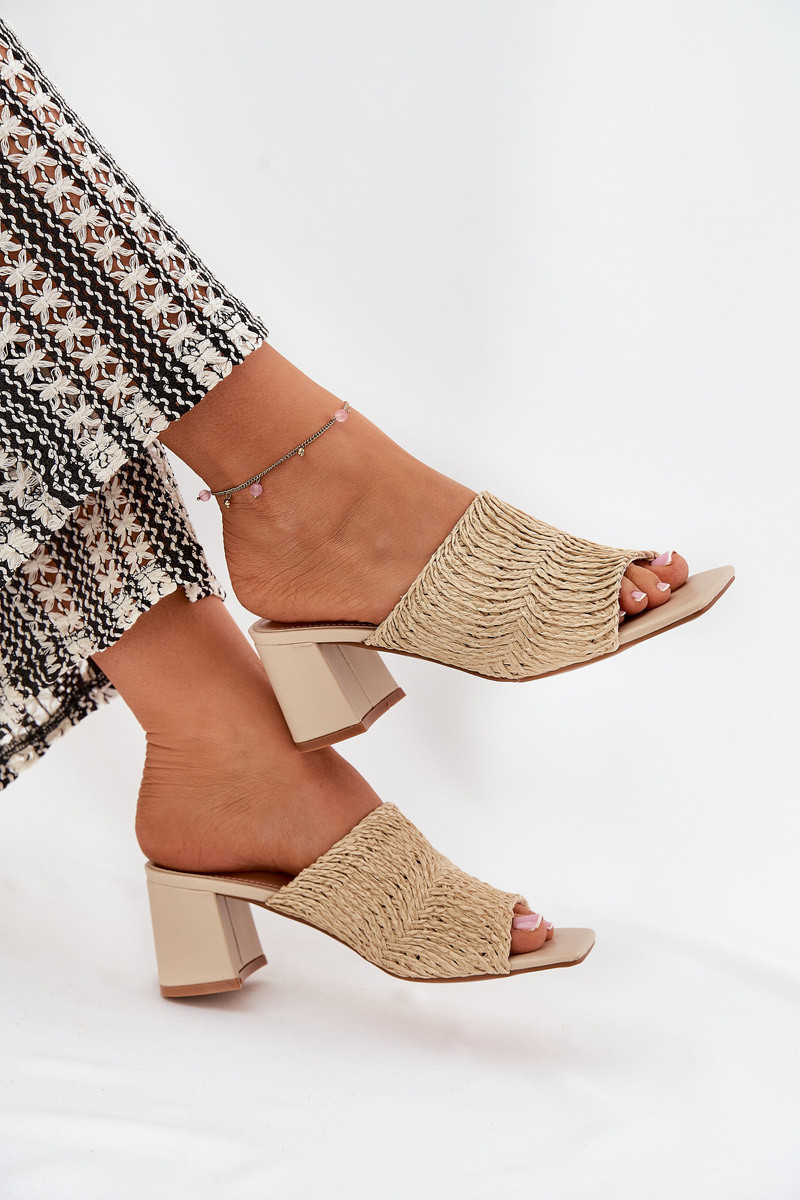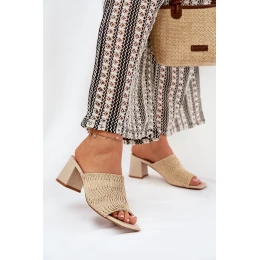 Dámské Pantofle S Pletením Na Podpatku Béžové model 21689418 - Boto
