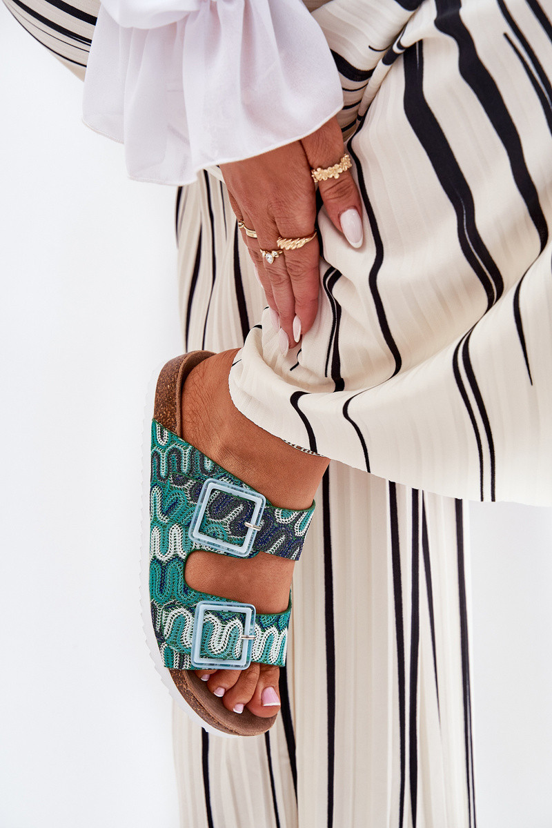 Dámské Pantofle S Přezkami A Briliantem S.Barski RB51-006 Zelené