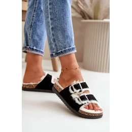 Dámské Pantofle S Přezkami A Kožíškem Černé Ezilena