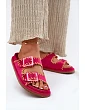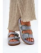 Dámské pantofle z ekologické semišové kůže, které přitahují pozornost ozdobným lemováním a efektními sponami vpředu. Komfort nošení zajišťuje profilovaná stélka, která se dokonale přizpůsobí tvaru nohy. Tento módní model je skvělou volbou na letní dny - ideální jak pro městské stylizace, tak na prázdninové výlety! Při výběru velikosti se řiďte tabulkou velikostí.